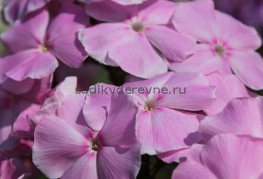 У флокса Владимир огромные молочно-розовые с более темным глазком шелковистые цветки колесовидной формы. Диаметр цветка 5,2 см. Соцветия округло-конические. Срок цветения поздний.